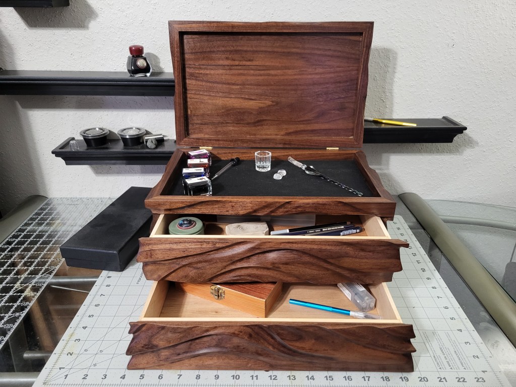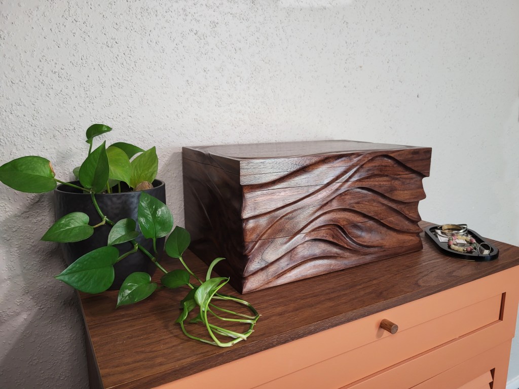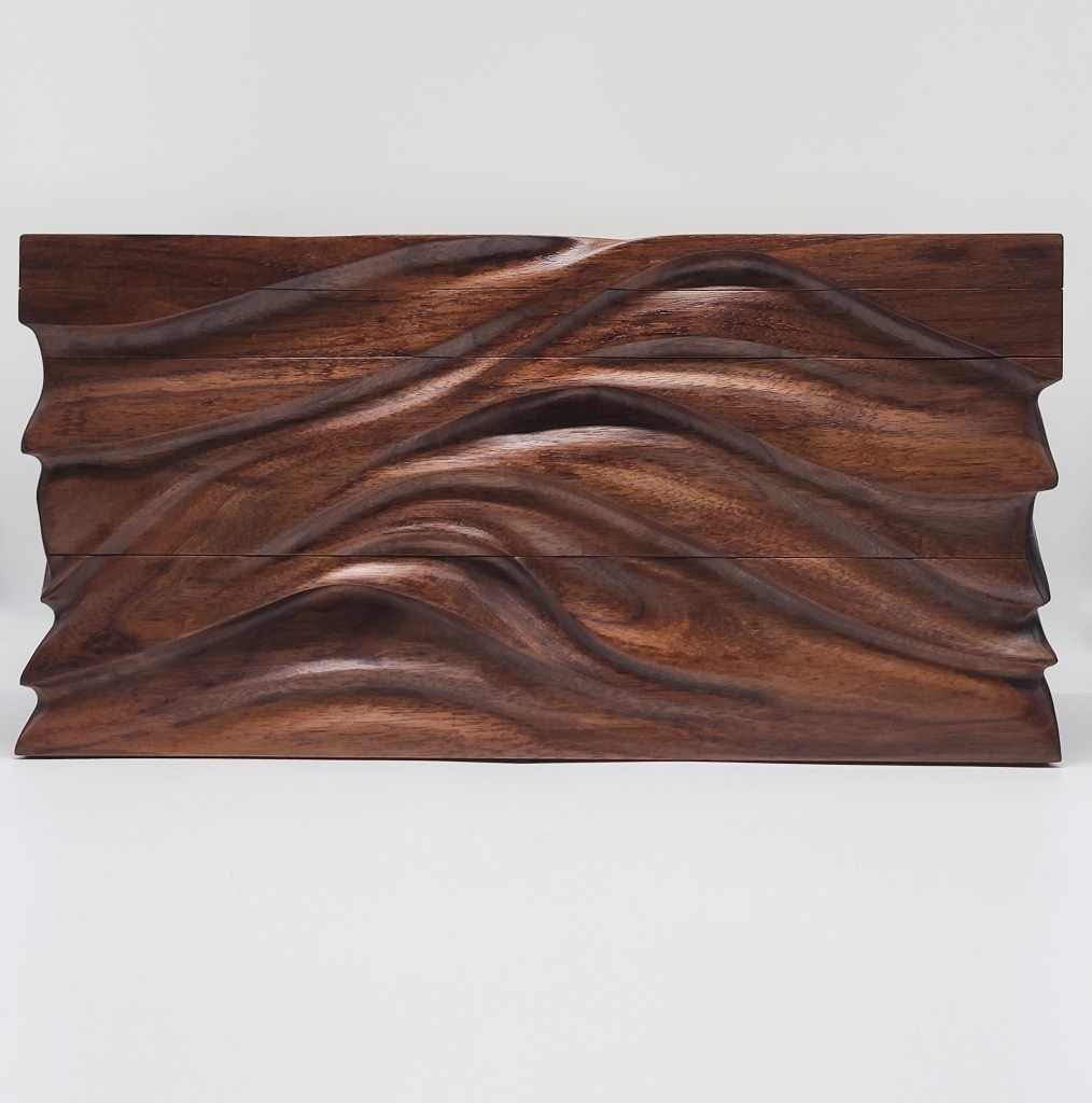 Hidden Waves is a sculptural drawer-style box featuring two drawers and a lid, each seamlessly integrated into its fluid, wave-inspired design. The openings are subtly carved, maintaining the harmony of the form while offering discreet functionality. SOLD